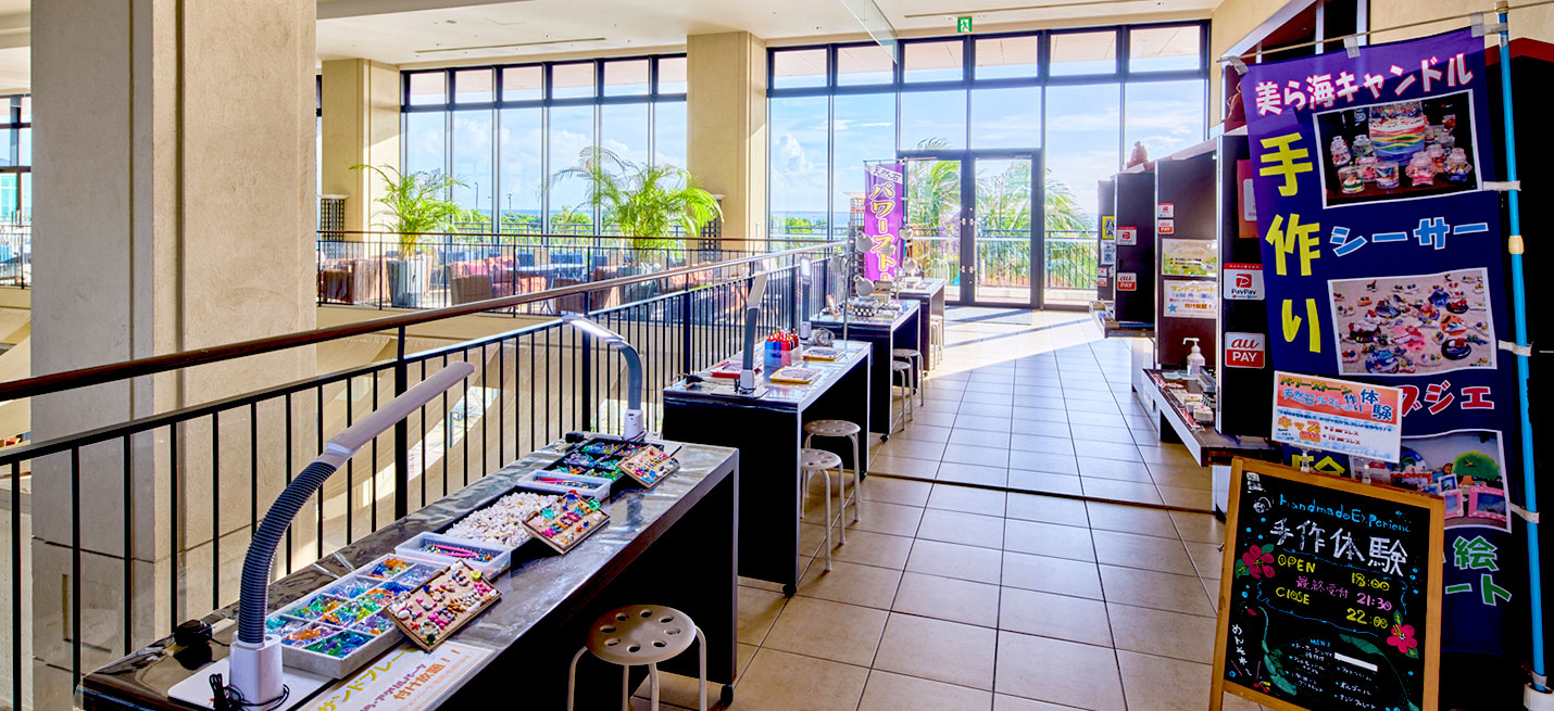 公開日 カテゴリー ホテル内「南国屋台」 手作り体験コーナー「南国屋台」 シーサー絵付け体験や貝オブジェ、沖縄の海をイメージしたアクアドームにジェルキャンドルなど豊富な体験メニューをご用意しています!お子様でも作れて親子でも楽しめる沖縄旅行の思い出をご自身で作ってみませんか? 場所 2F 時間 18:00~22:00(最終受付21:30) 定休日 なし