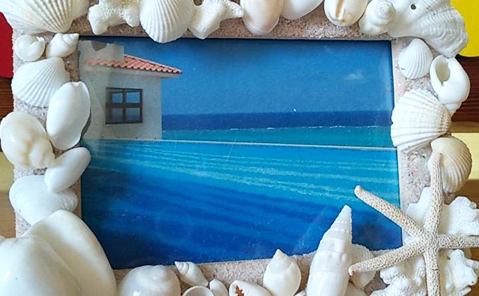 沖縄の美ら海からのおくりもの、真っ白な貝殻やサンゴをフレームに自由に貼り付ければ、オリジナルアートの完成です。