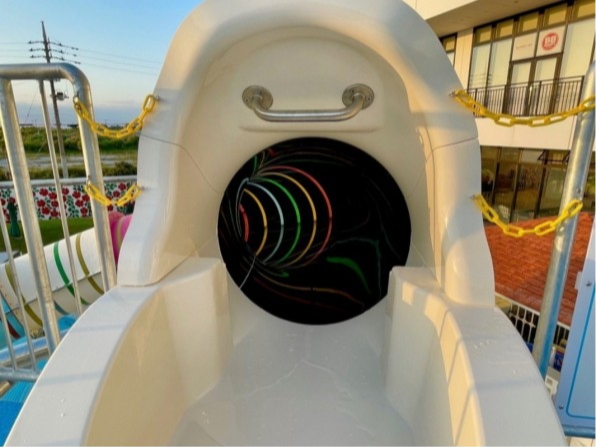 特殊技法で作られたナチュラルライトエフェクトスライダーは、外部からの自然光をスライダーに取り込み、滑走面に光の演出を照らし出す特殊効果が特徴的です。