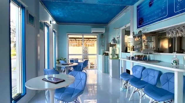 海の中をイメージした店内で、沖縄産のフルーツを使ったパフェやワッフルを堪能してください。