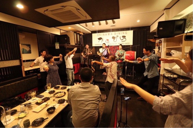 毎日、沖縄民謡の生演奏ライブを2回行っております。沖縄料理や創作料理も好評です!