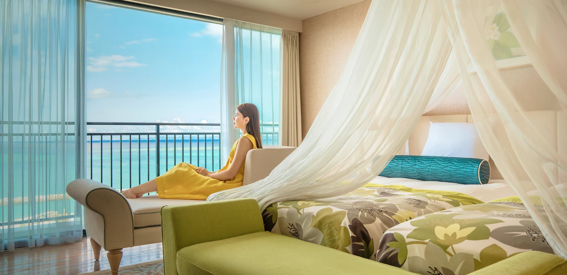 【早割90】選べる夕朝食&連泊特典付|糸満の街並みを眺めるラウンジが利用できる高層階客室Stay