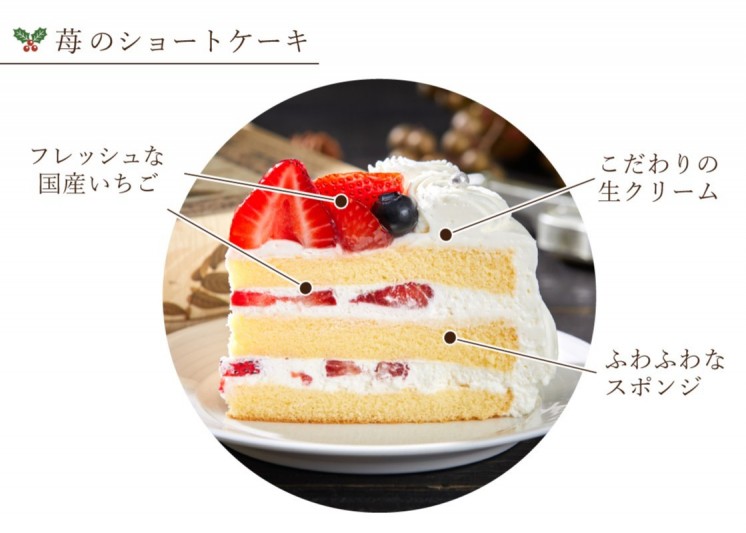 しっとりスポンジに国産いちごをケーキの上に6粒、そして中の2層には8粒もサンドした贅沢に仕上げたホテルメイド納得の王道ケーキです。